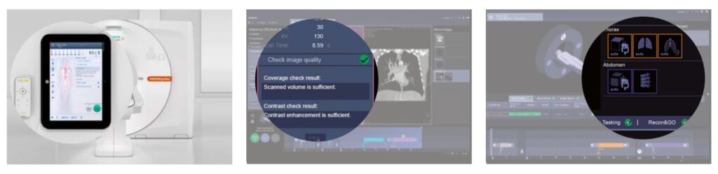 - Reducerea anxietății pacientului datorită deschiderii mari a unității, cu un diametru de 70 cm, ce permite accesul și poziționarea pacienților cu greutate peste media normală sau a celor claustrofobi. În același scop, operatorul este vizibil pacientului pe tot parcursul investigației, iar în anumite cazuri, în care nu este necesară interacțiunea cu operatorul, pacientul poate asculta muzică pe tot parcursul procedurii. Pentru siguranța pacienților, substanța de contrast utilizată este de ultimă generație și prezintă un risc scăzut de declanșare a reacțiilor alergice.